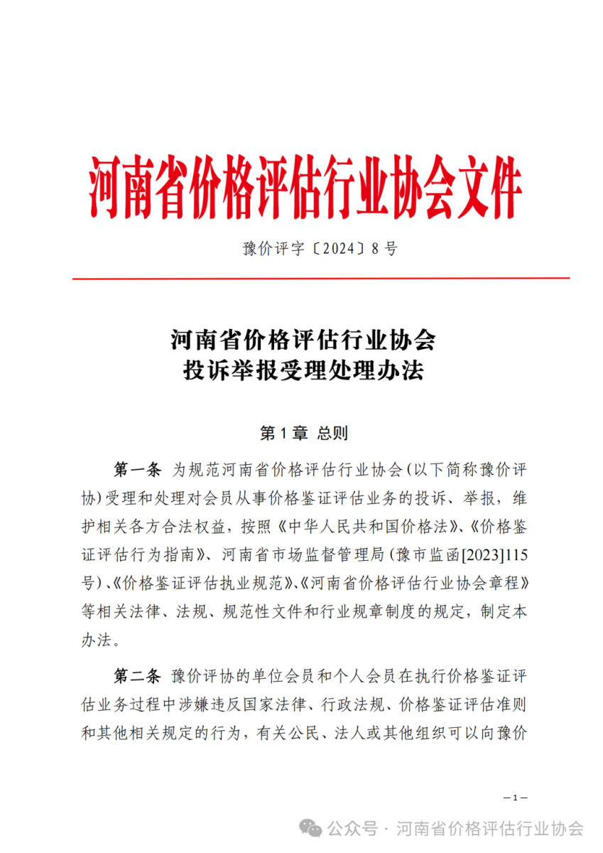协会通知┃河南省价格评估行业协会投诉举报受理处理办法